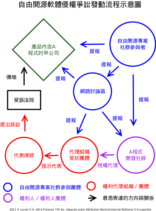 ▲ 圖1 自由開源軟體侵權爭訟的發動流程示意圖